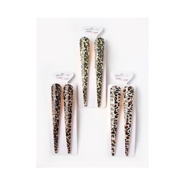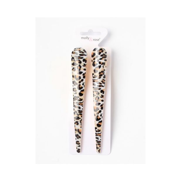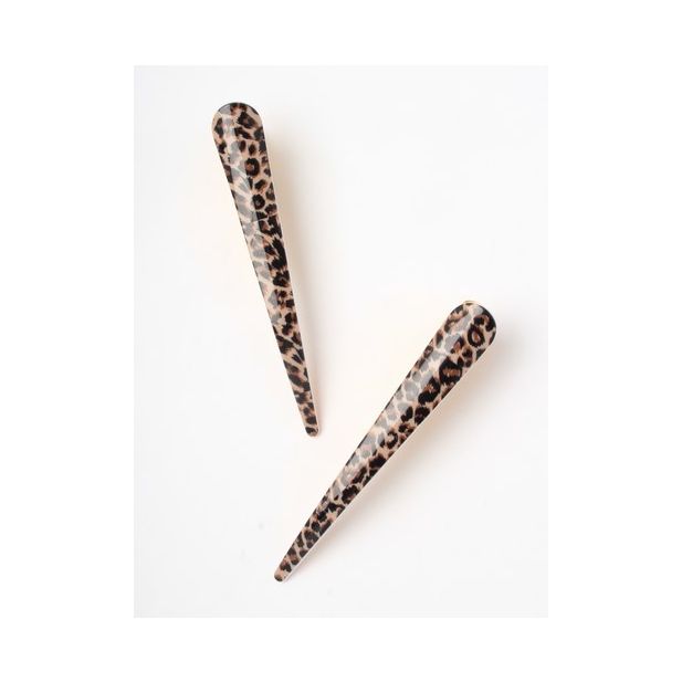 Kullanväriset metalliklipsit, joissa eläinkuviointi. Koristeosa kiiltävää akryylimuovia. Klipsin pituus 13 cm. Yläleuassa pieni hammastus. Pakkauksessa 2 kpl. Kolme erilaista sävyä: vaaleanvihreä, ruskea, vaalea oranssi.