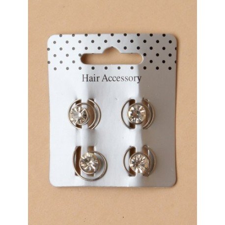 Hopeanväriset hiuskorut, jotka kierretään hiuksiin. Koristeena kirkas korukivi, koko 0,8 cm. Pakkauksessa 4 kpl.
